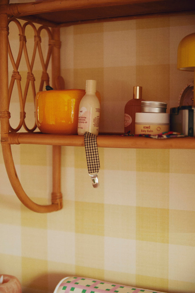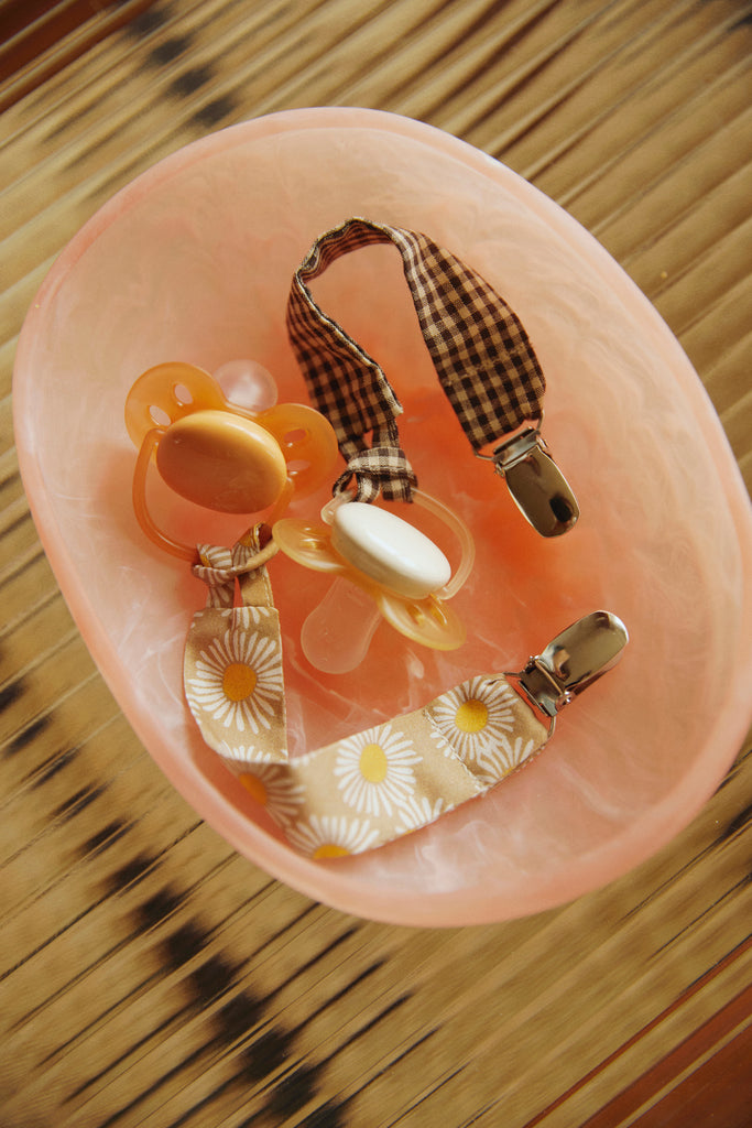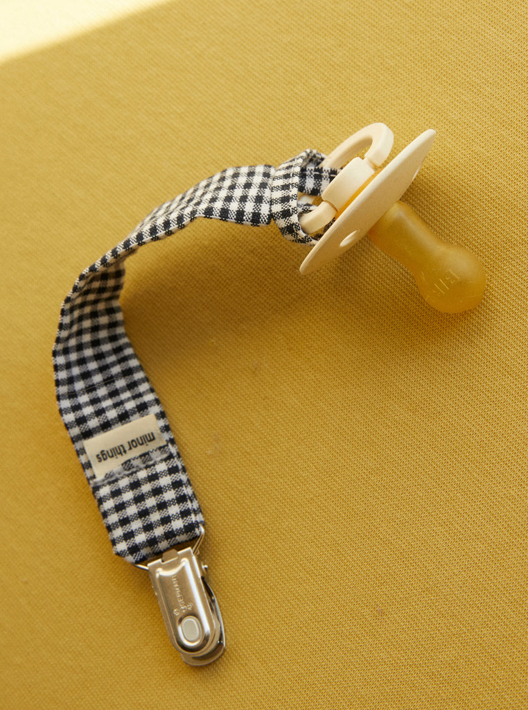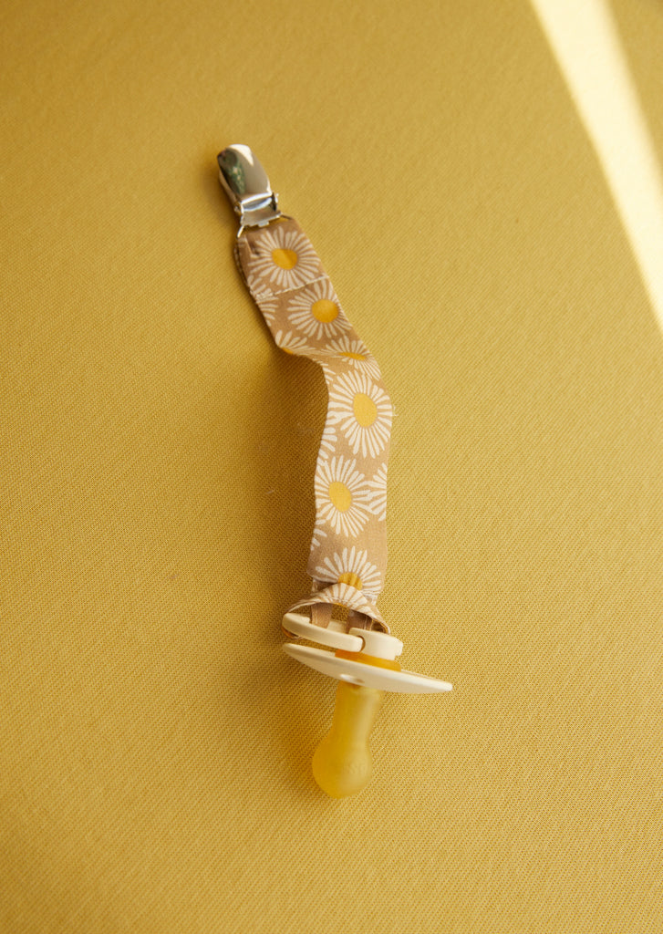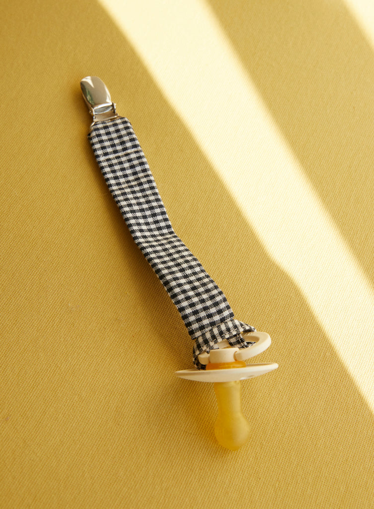 Our pacifier clips are machine washable at 40°C. We recommend using a fragrance-free, mild detergent because the pacifier clip often comes in contact with your baby's skin. Hang to dry before using again.